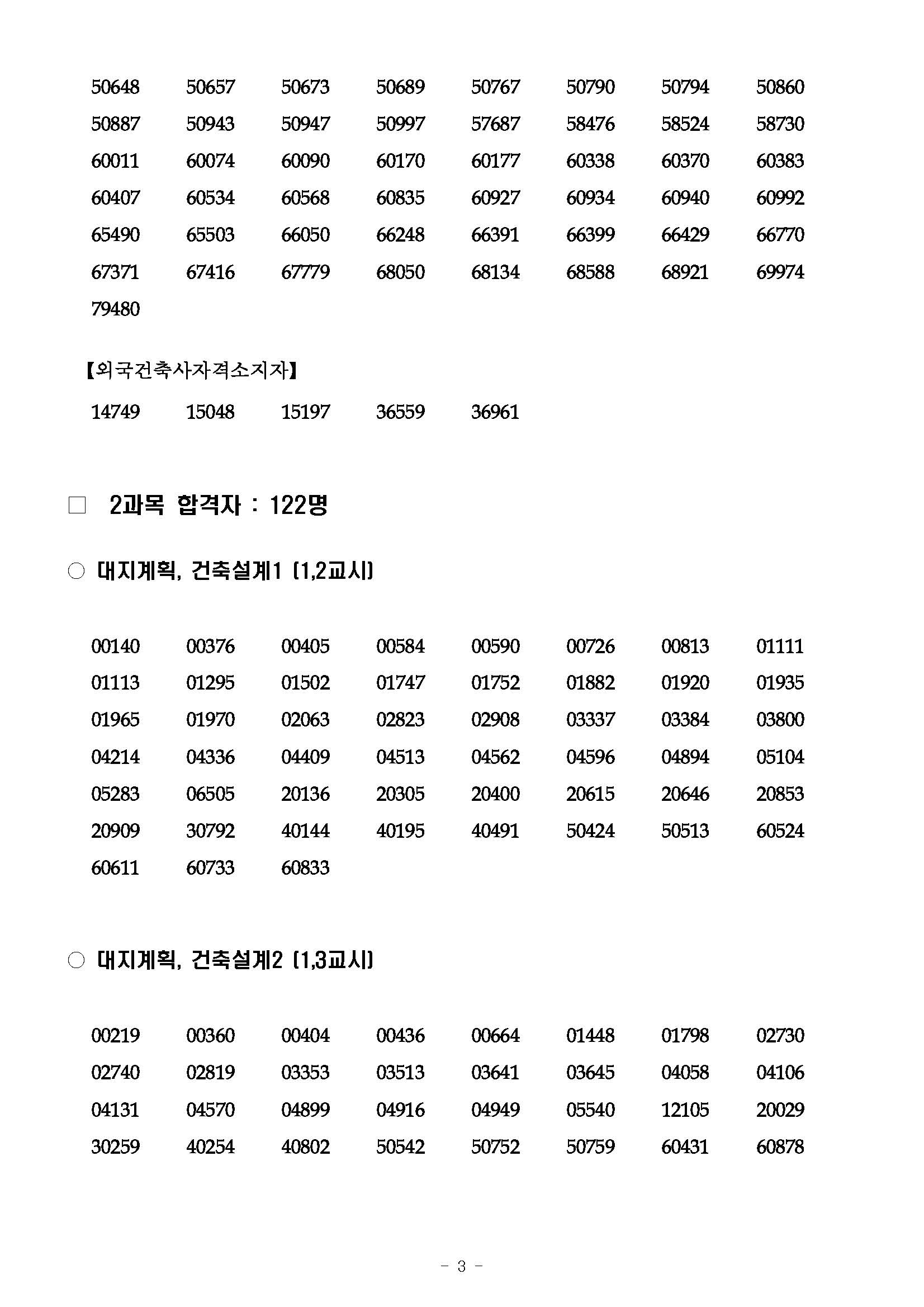 2025년도 제2회 건축사 자격시험 최종합격자 발표