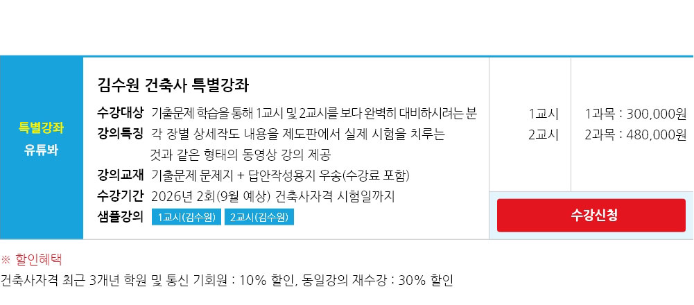 1교시 1과목:300,000원, 2과목:480,000원