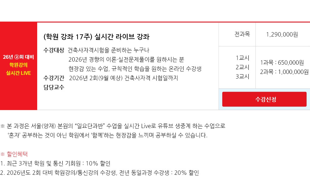 1교시 1과목:650,000원, 2과목:1,000,000원