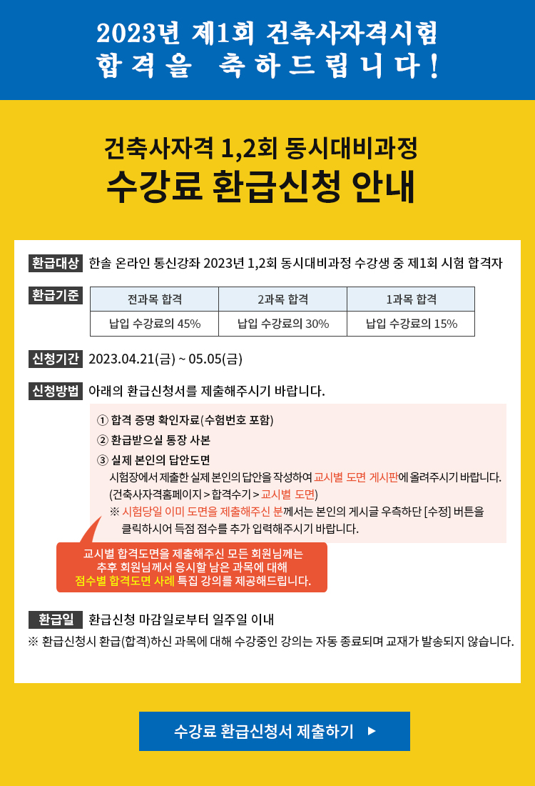 온라인 통신강좌 2023년 1,2회 동시대비과정 수강료 환급신청 안내
