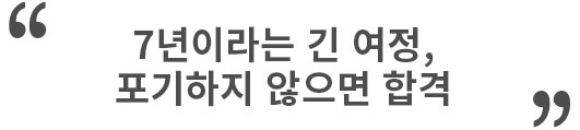 7년의 긴 시간동안.. 부분합격, 부활, 잠시포기, 다시도전, 전체합격..의 과정을 거치면서 지치고, 힘들고, 가족에게 미안하고, 많은 시련이 있었지만, 포기하지 않고 끝까지 하였기에 합격할 수 있었습니다.