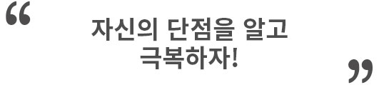 항상 시험이 끝나면 실수에 대한 후회를 하곤 했는데, 그 실수는 시험준비기간에 습관처럼 나왔던 실수였던 것 같습니다. 매번 하던 실수가 나의 습관이 되어 단점이 되지 않도록 나자신을 정확히 분석하고 극복하면 좋은 결과가 있을 것입니다. |