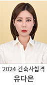 안녕하세요. 제주에서 독학으로 건축사에 합격한 유다은이라고 합니다. 처음엔 학원에서 전체적 시험분위기나, 학습방법 등을 익힌 후에 그 이후에는 한솔아카데미에서 인터넷강좌를 통해 최종합격까지 성공했습니다! 업무와 동시에 학업을 병행하다 보니 욕심부리지 않고 1과목씩 집중하여 차근차근 해나 가자는 마음으로 준비했습니다.