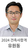안녕하세요. 저는 이번 24년 2회 건축사자격시험에 합격한 유원동입니다. 저는 학부(건축공학) 및 대학원(건설관리) 졸업후 건설회사에서 10년간 근무후 이직하여, 현재는 공기업(약 10년)에서 근무하고 있습니다. 한솔과의 인연은 건축시공기술사(120회 합격) 학원강의로부터 시작하여 건축사합격(학원강의+온라인강의) 까지 이어지게 되었습니다. 저는 2013년 건축사예비시험을 합격하여 언제가 내 건물·내집은 내가 설계·시공하겠다는 꿈이 있기에 2026년 전까지는 반드시 건축사 자격을 취득하겠다는 목표를 가지고 있었고, 그 목표를 창조주의 은혜로 이제 달성하게 되었습니다.