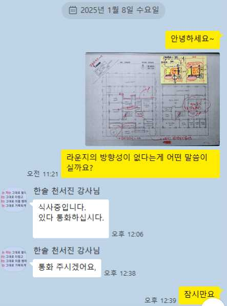 그동안 하던 방식의 관성 때문에 생각처럼 되지 않을 때가 대부분이었지만 천서진 선생님의 도면체크와 전화통화를 자주 하며 꾸준히 공부했습니다.