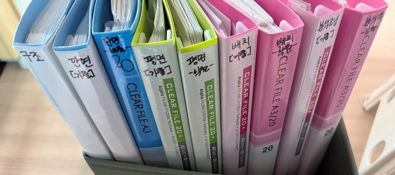 아래 사진처럼 구조·단면·평면·배치 등으로 파일을 나누고, 각 문제에서 체크 포인트, 대안등을 함께 메모해두었습니다.