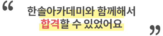 합격자가 많이 줄어드는 시기에 공부를 시작해서 너무 속상하고 더 힘들었는데 한솔에 와서 이렇게 끝까지했더니 좋은 결과 얻을수 있게 되어서 너무 기쁩니다. 노력은 배신하지 않는다는 말이 입증된거 같아서 너무 기뻐요! 수험생 여러분들도 끝까지 파이팅 해주세요 그럼 꼭! 저처럼 좋은 결과 있으리라 확신합니다. 수험기간동안 흔들리고 힘든 순간이 많았지만 한솔아카데미와 함께 합격할수 있어서 더 기분이 좋네요 파이팅입니다~! 그리고 한솔아카데미에서 “합격자 세미나” 해주신것도 너무 뿌듯하고 감동이었습니다. 주변에 자랑도 많이하고 학원 같이 다녔던 친구에게도 꼭 너도 여기 올날이 있기를 하면서 격려해줬어요 제가 준비하면서 힘들 때 저도 합격자 세미나 한거 보면서 거기 갈 날을 손꼽으며 전의를 다지기도 했거든요~! |