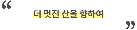 등산을 하다보면 정상을 향하는 등산로가 수없이 많습니다. 짧지만 가파른길, 완만하게 돌아가는 둘레길, 수많은 사람이 지나간 길, 누구도 걷지 않은 숲길 등 산을 오르다보면 여러사람을 만나고 또 함께 오르게 됩니다.