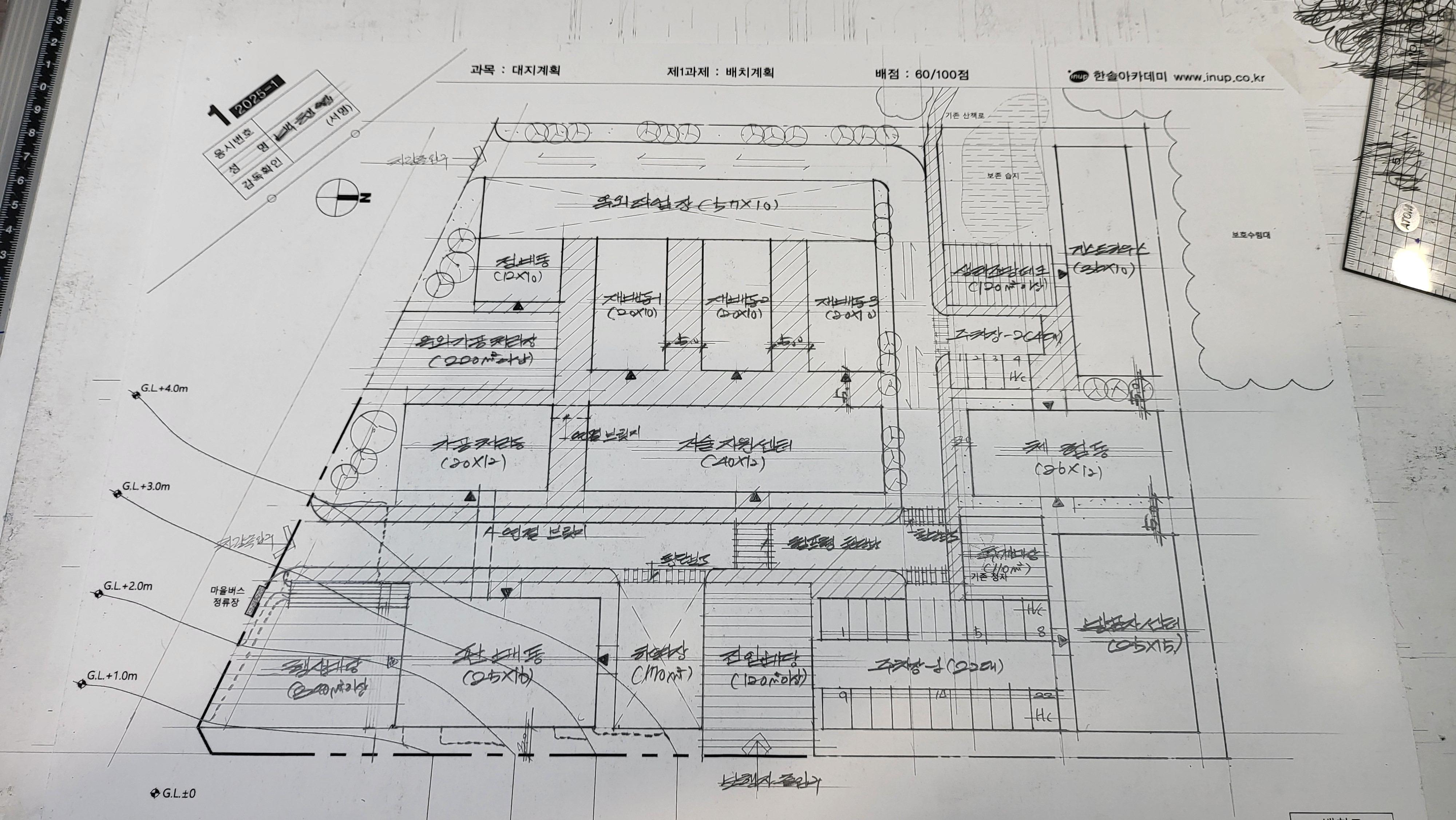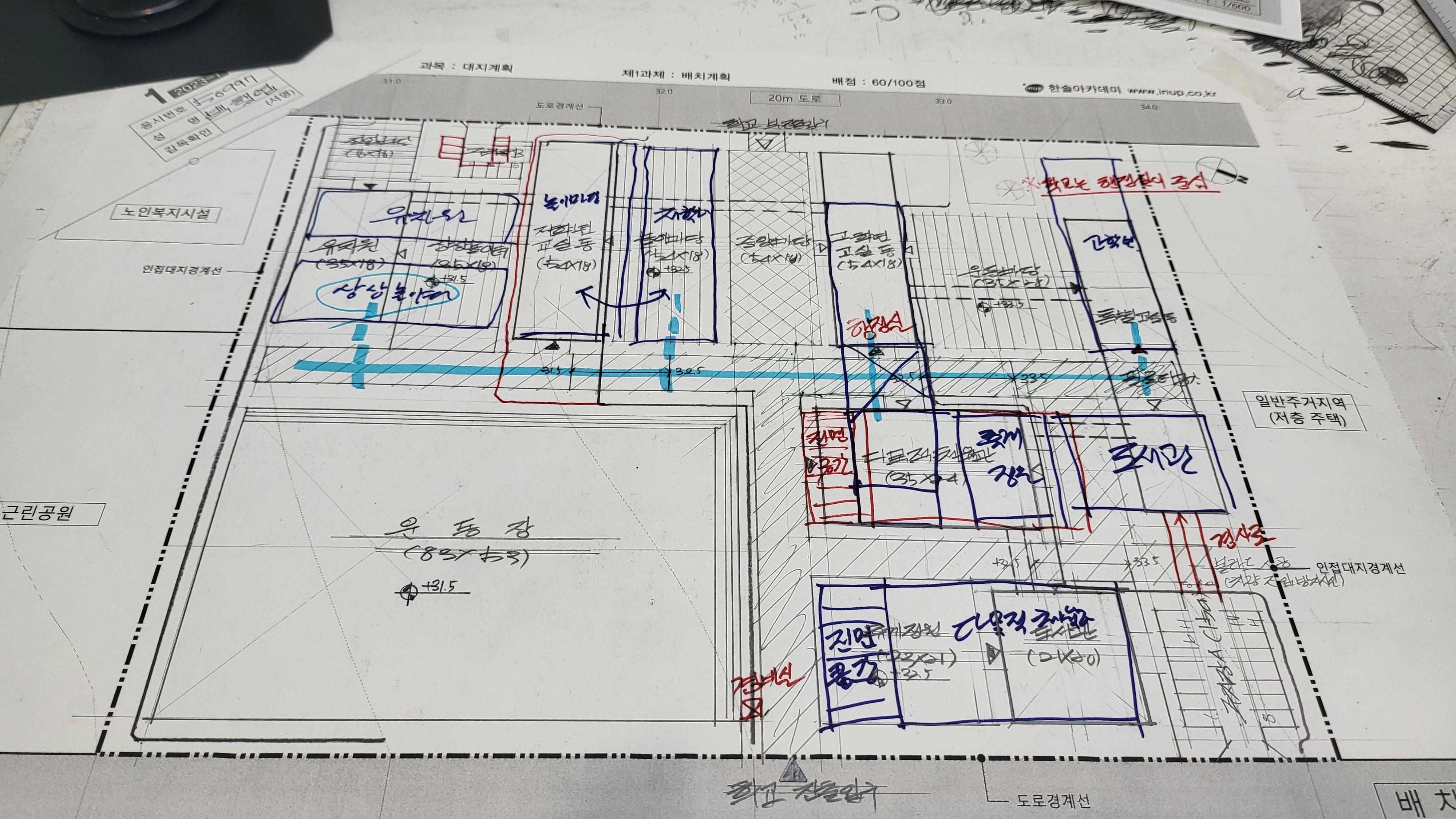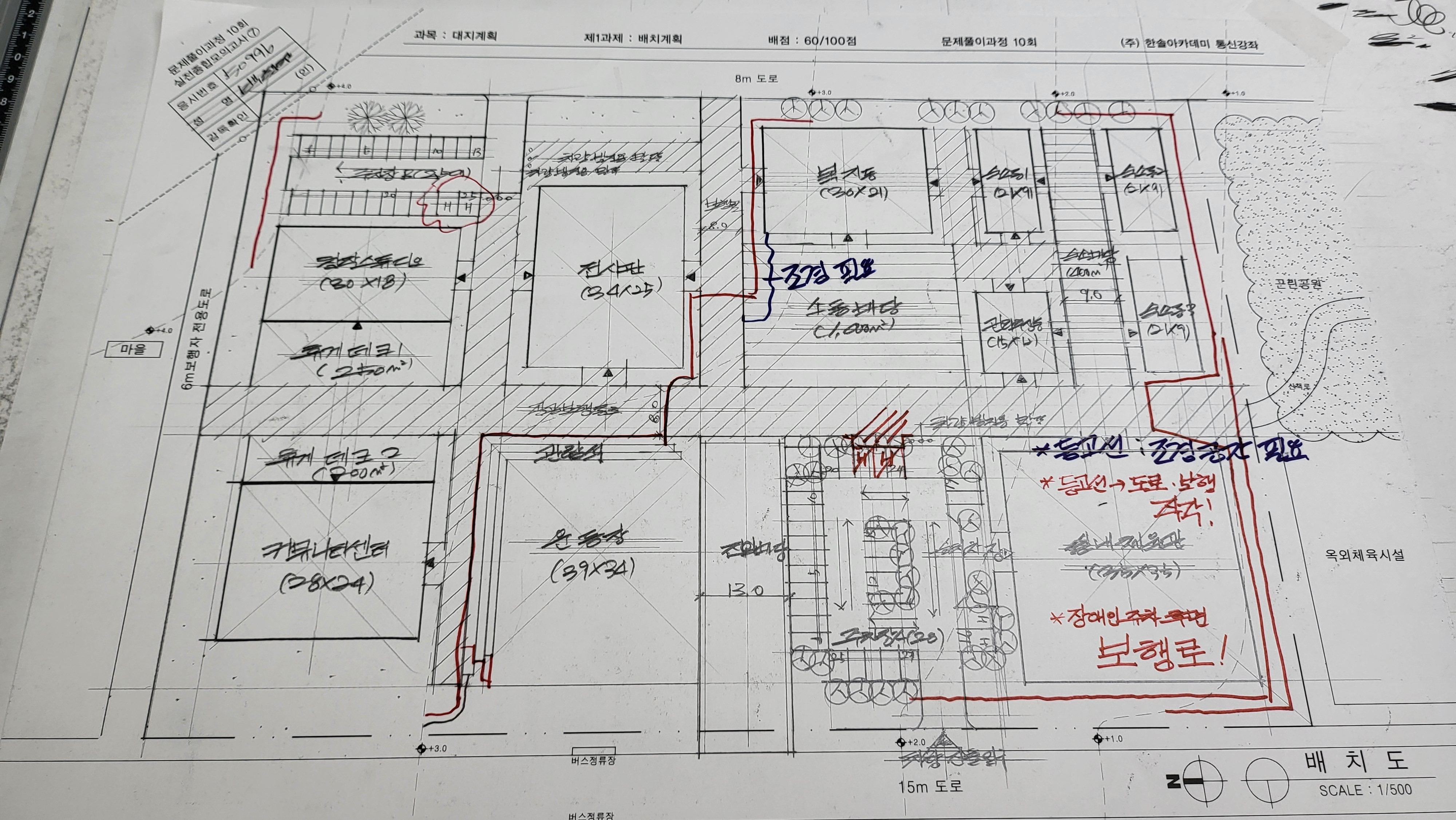 (배치계획) 임덕종 교수님의 강의 내용을 여러번 들어가면서 큰 맥락에서 접근 할려고 노력했습니다. 도로, 정북, 공원, 숲 등 대지의 조건을 먼저 파악하고 문제에서 지시하는 맥락을 이해할려고 노렸했고, 기출문제와 학원문제를 여러번 풀어보았습니다. 가장 중요한 건 답안을 먼저보고 풀려고 하지 않았습니다. 틀려도 좋으니 먼저 제가 생각하는 배치안대로 끝까지 완도해 보고 나서 답안을 살펴보았습니다. 그렇게 반복하다 보니 어느 정도 느낌이 왔습니다. 물론 풀리지 않는 문제도 많았지만 포기하지 않고 저만의 루틴으로 문제풀이를 했습니다.