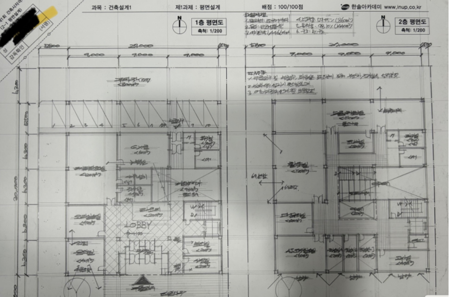 도면은 아래와 같이 퀄리티를 유지하려고 노력했고, 김수원 선생님 피드백 대로 주안점과 창문표현을 생략하는 식으로 도면의 명확성을 더 키울려고 했습니다.